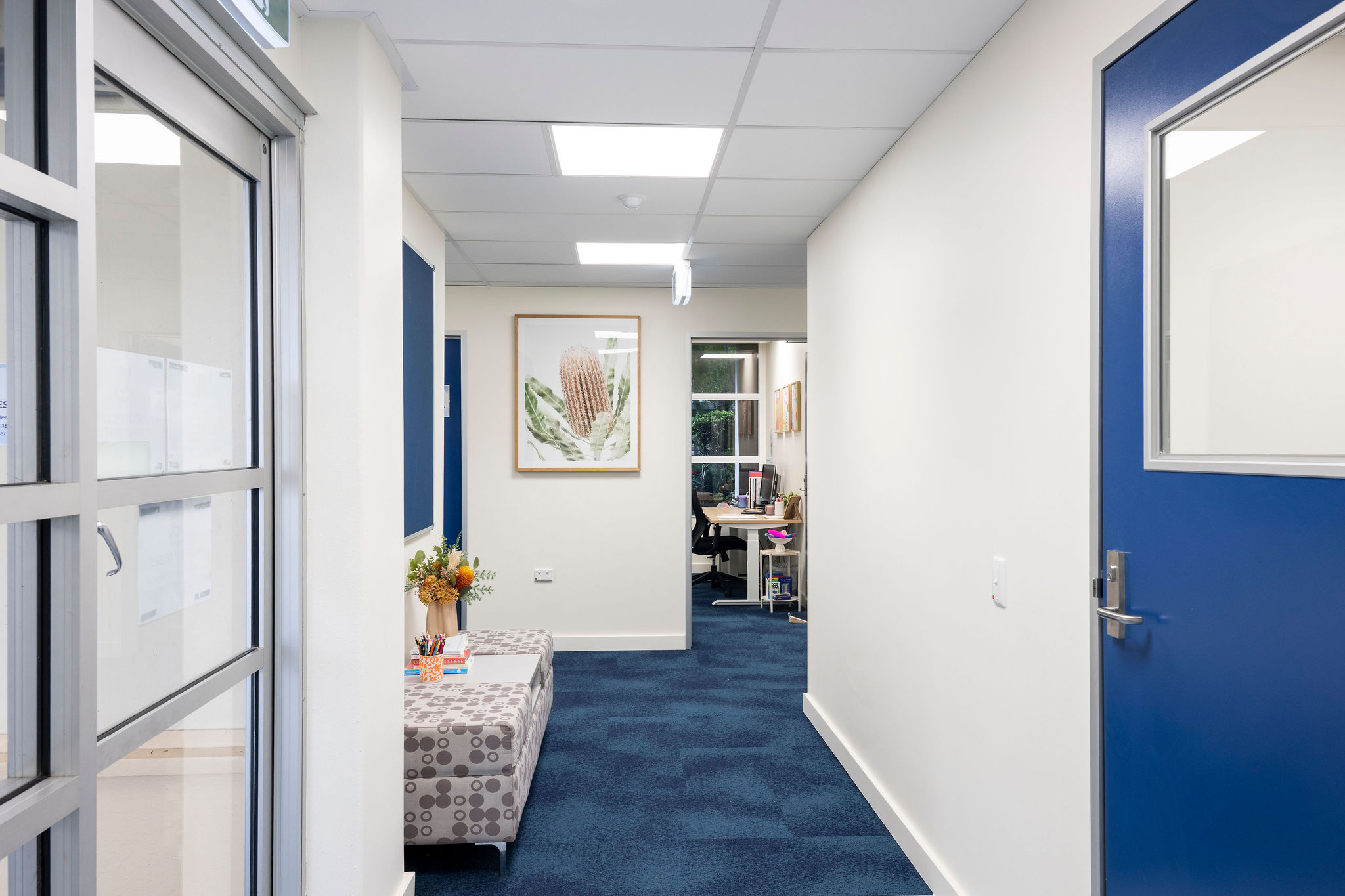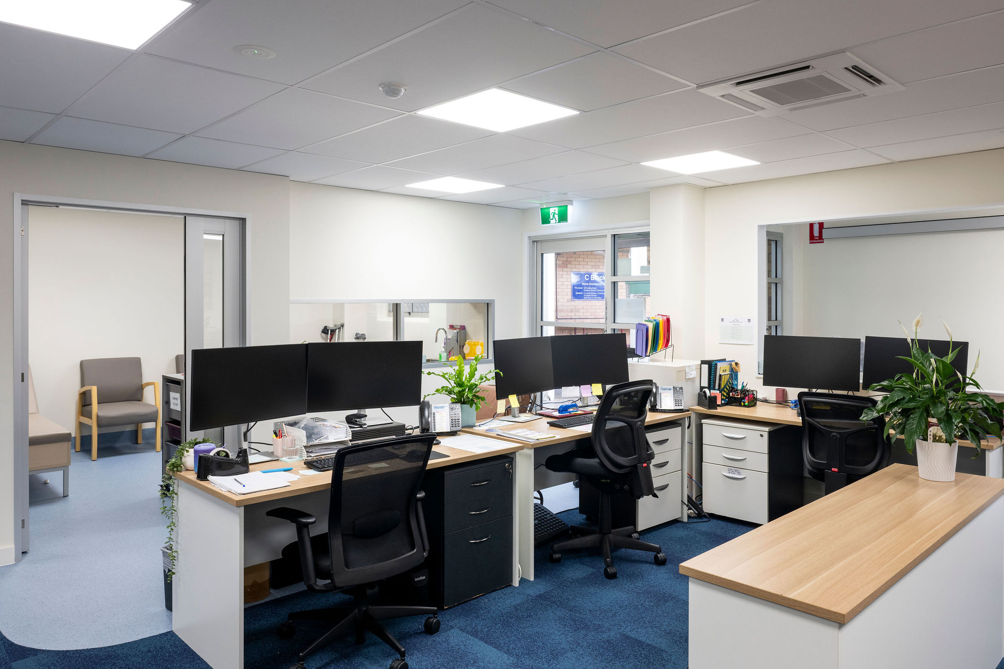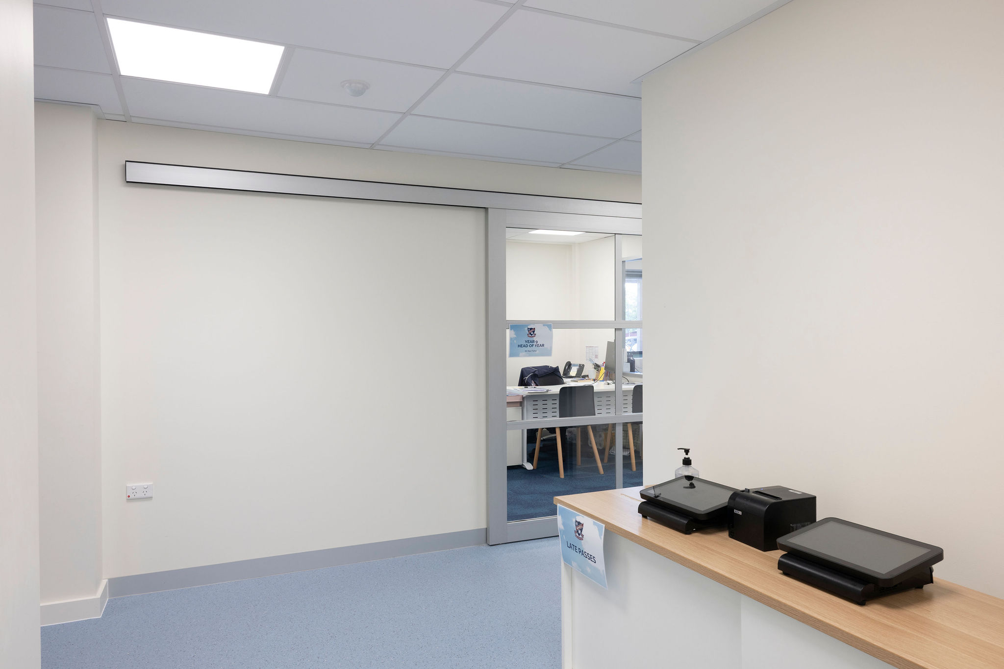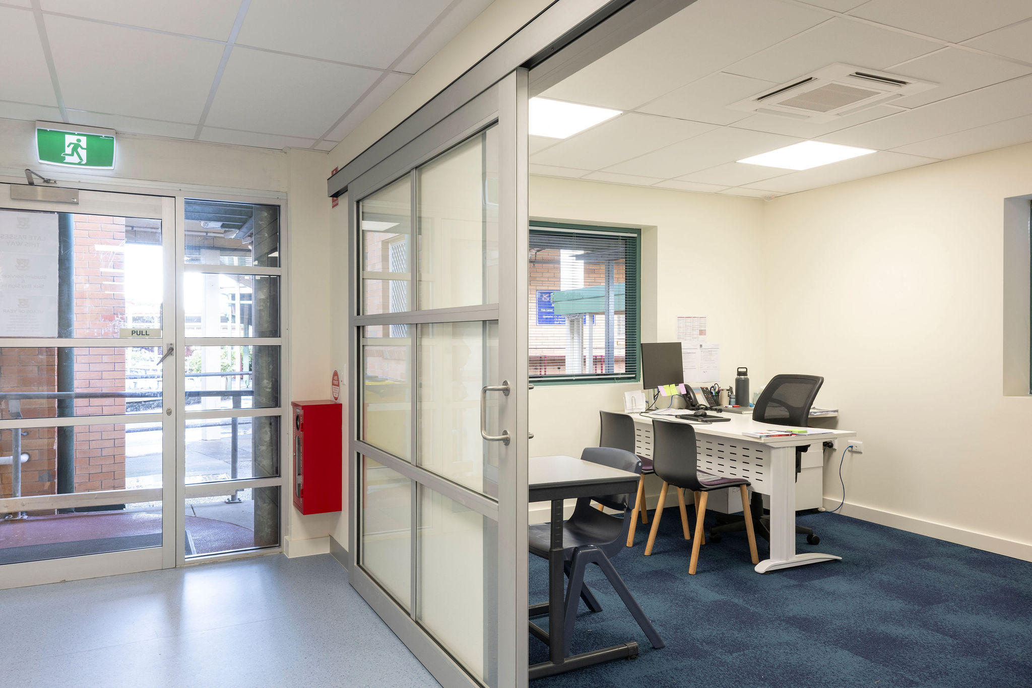 - Demolished and reconfigured the ground floor administration layout, forming a new reception, student services area, meeting rooms, offices, sick bay and staff kitchen