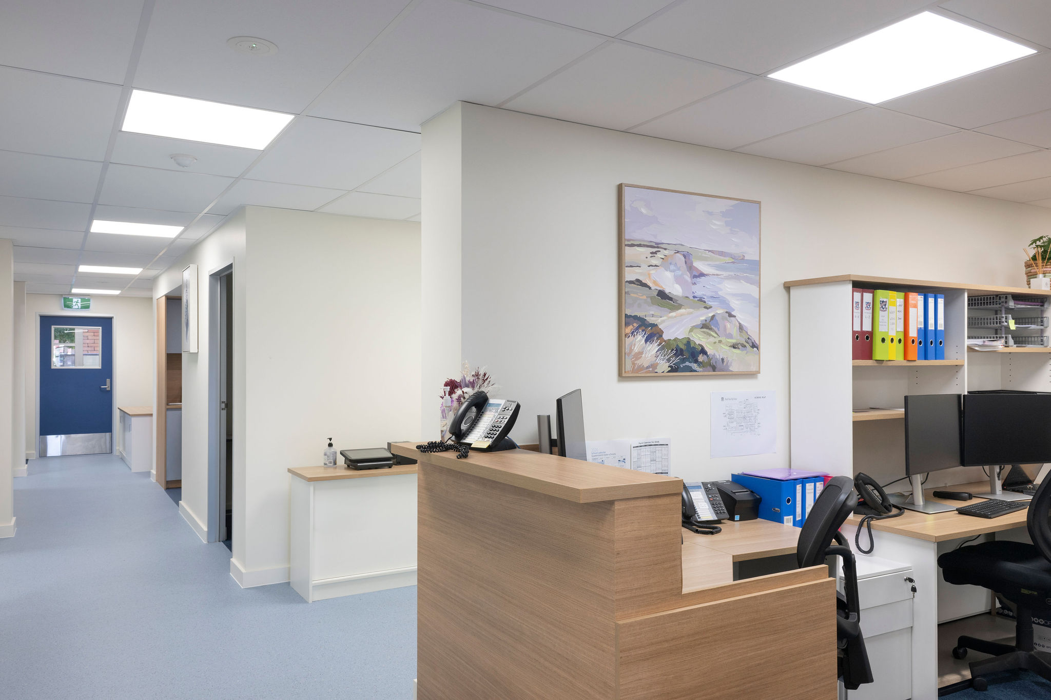The completed refurbishment delivered a modern, compliant administration facility for Wavell State High School, providing improved reception and student service areas, new staff kitchen and sick bay facilities, anddurable finishes suited to a busy school environment.